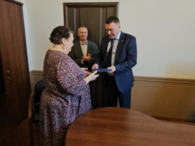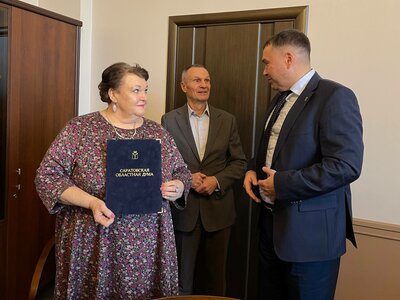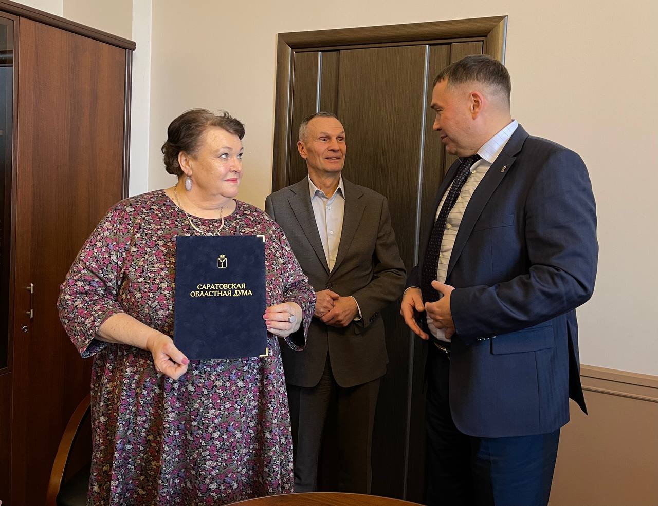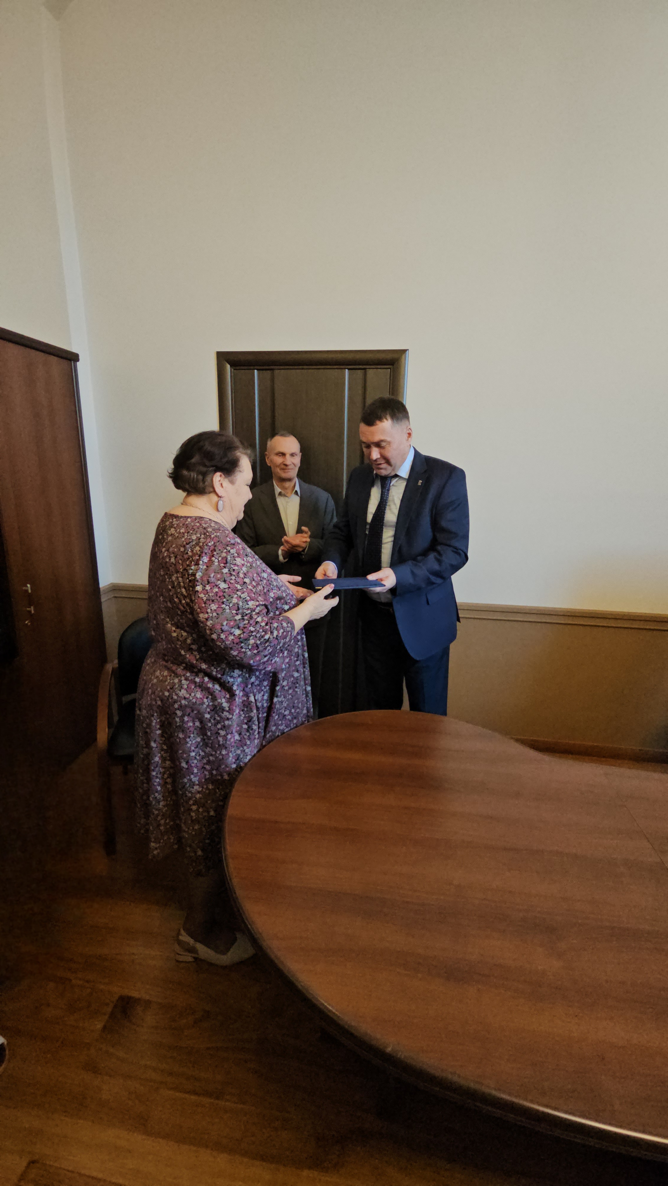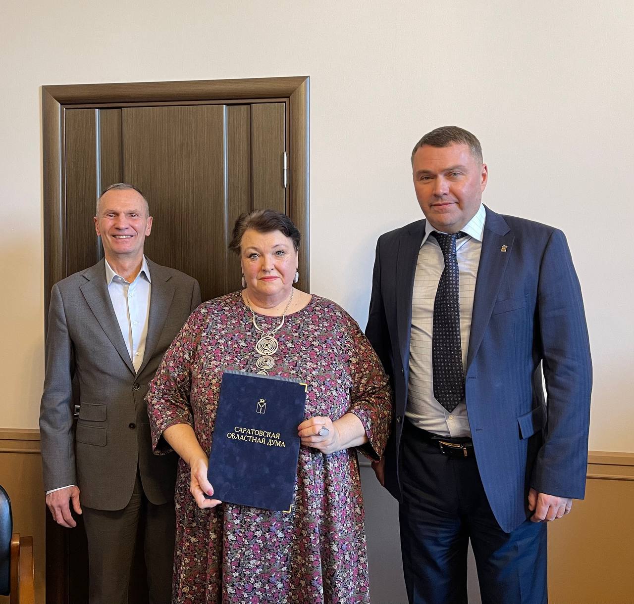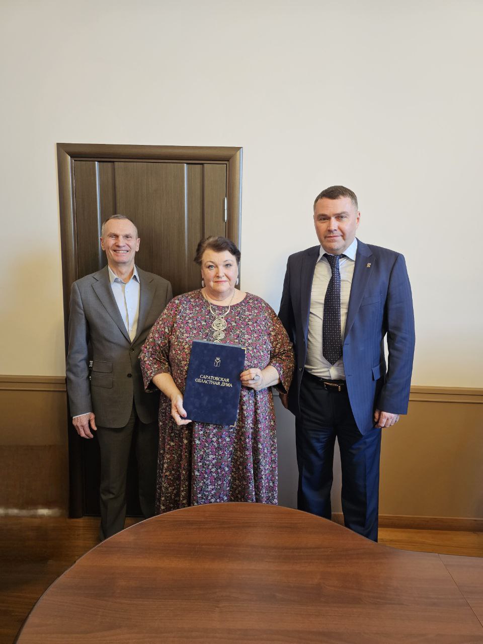 В стенах АО НПП "Реф-Оптоэлектроника" состоялось торжественное награждение Главного бухгалтера предприятия Родновой Людмилы Борисовны Почетной грамотой Саратовской областной Думы, в котором приняли участие депутат Саратовской областной Думы - Грибов Роман Викторович, генеральный директор АО НПП "Реф-Оптоэлектроника" - Сидоренко Александр Дмитриевич и коллектив предприятия.